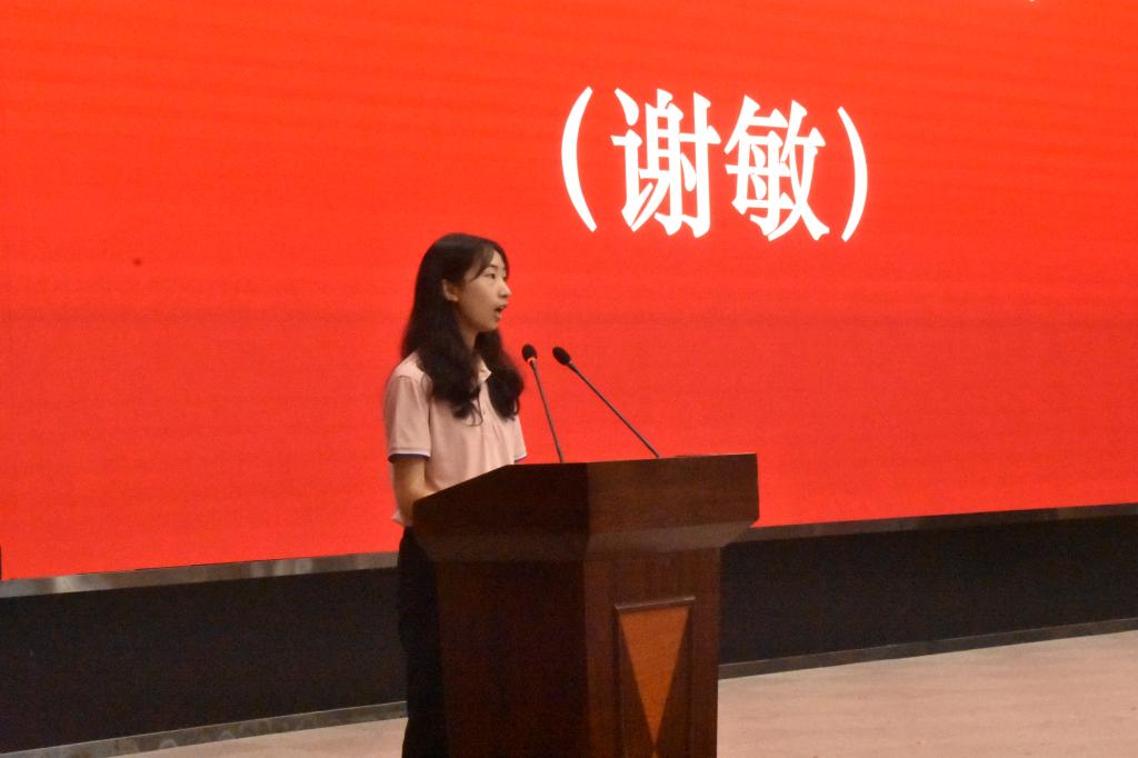 仪式进入第六项,员工代表发言。由本科毕业生代表谢敏和硕士毕业生代表李英杰发言。他们代表毕业生们表达对公司和老师们教导的感恩,并表示会在未来新的领域接续奋斗,不忘师恩,砥砺前行。