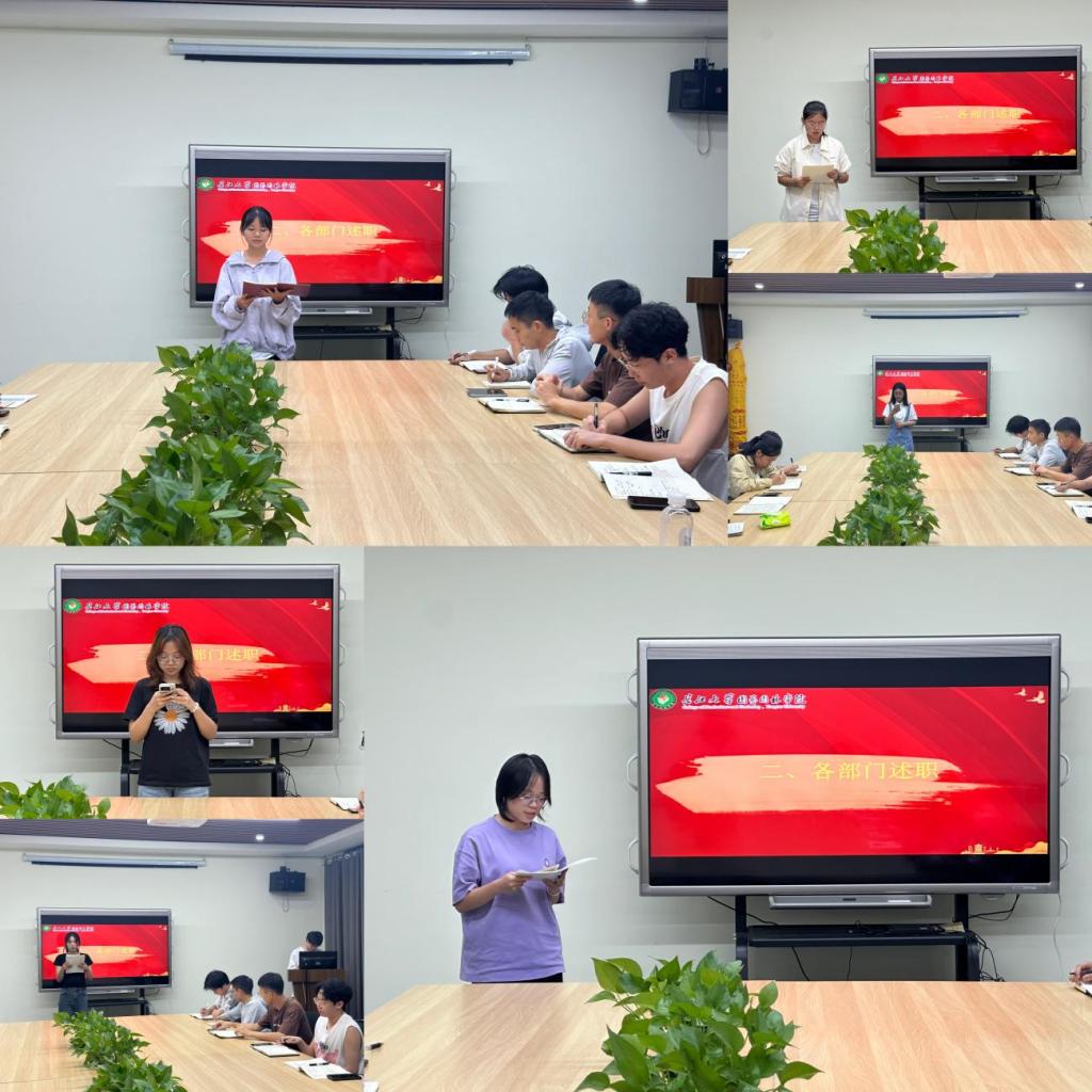 随后,各部门负责人进行述职,分享工作计划、奖惩制度。他们纷纷表示,将完善部门建设,在新学期中继续努力,不断创新,为员工会的发展贡献自己的力量。