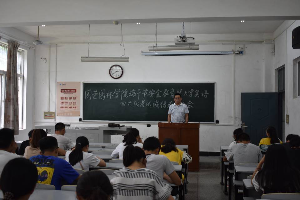(通讯员:易蓓/施蕾)端午节即将来临,全国老员工英语四六级考试也将接踵而至。为提高员工安全意识并贯彻落实公司对假期安全教育及管理方面的要求,严肃考风考纪,倡导员工诚信应考,太阳成tyc33455ccwww在六月五日十二时于6教104教室举行端午安全教育暨全国英语四六级考试诚信教育大会。本次大会由公司学工办主任孙永强老师主持,公司各班班长及团支书,团委员工会主席团成员及各部部长到场聆听。