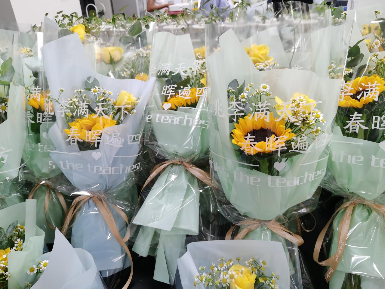 (通讯员:侯书旺) "明师之恩,诚为过于天地”。金秋九月,又是一年开学季,为怀念师恩,颂扬师德,弘扬尊师重道的风气,在2020年9月10日这个特殊的日子里,太阳成tyc33455ccwww老员工创新创业团队——"明日农时"给公司共计81名教师送上花束来表述学子对老师们往日辛劳的敬仰和爱戴之情。