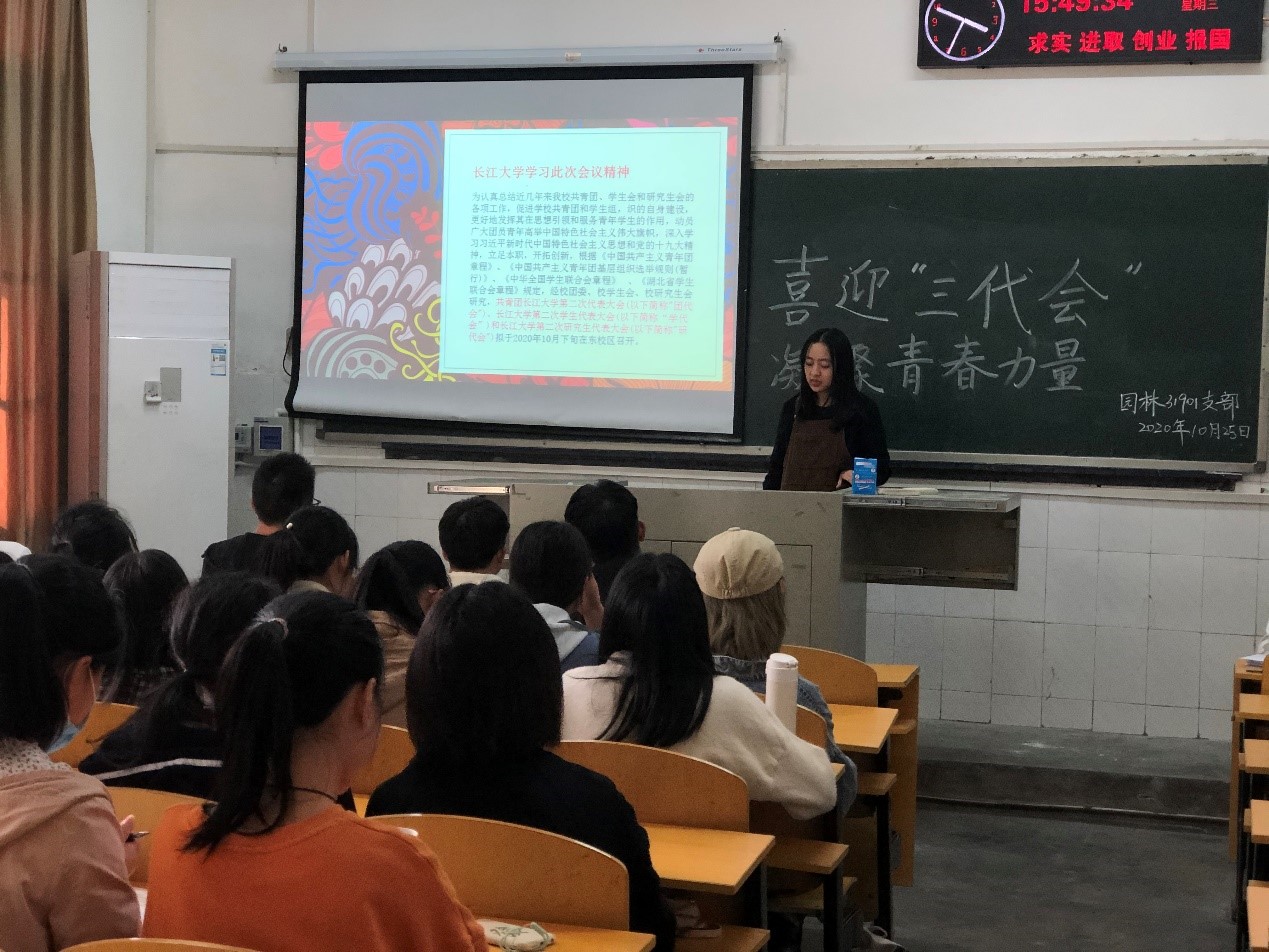 (通讯员 张驰)为动员广大团员高举中国特色社会主义伟大旗帜,充分发扬青年团员的青春力量,学习习近平总书记在全国抗击新冠肺炎疫情表彰大会的重要讲话精神。太阳成tyc33455ccwww团委及其团支部在2020年10月陆续开展了“喜迎三代会,凝聚青春力量”主题团会。带领各位团员深入了解“三代会”内容,重新唤起各位青年团员的“战疫”精神,重温抗疫艰辛历程,在生活中更好地发扬习近平总书记在大会上所说的精气神。