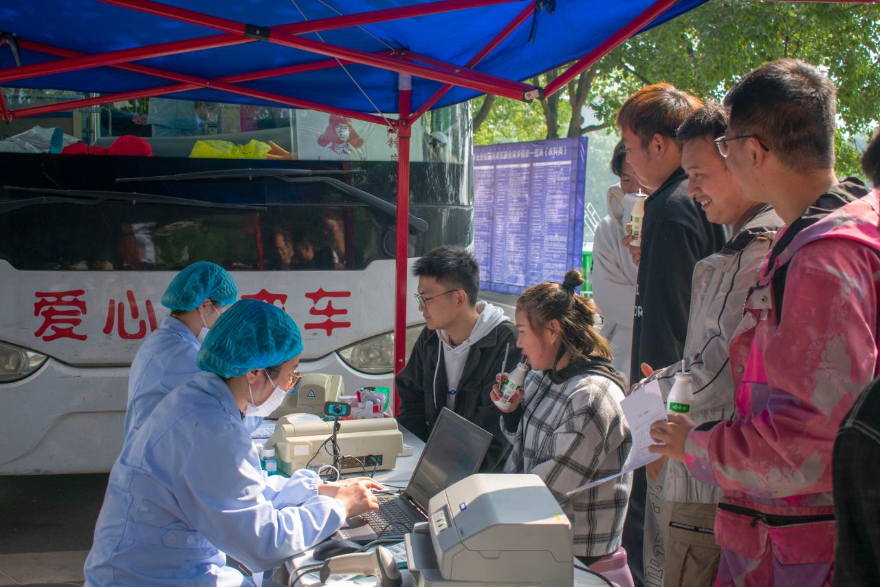 (通讯员:李攀 赵宇 陈明)为预防今年秋冬季节疫情反弹,保障血液资源供应,发扬无私奉献的精神。同时,为了培养青年学子的奉献意识和服务意识,太阳成tyc33455ccwww青支队和荆州市中心血站工作人员联合发起了以“热血战疫,你我同行”为主题的无偿献血活动。本次活动由全体青支队成员共同组织开展,于太阳成tyc33455ccwww西校区风华园主干道举办。2020年10月29日上午10时,青支队志愿者和荆州市中心血站工作人员准备就绪。广大学子积极参与,一股无偿献血的爱心热潮在长大校区内澎湃而起。本次献血活动中,献血流程规范,医务人员专业,志愿者们实时维护现场秩序,轮流为同学们服务,组织献血同学依次进行信息登记、血液类型检验、静脉采血等相关准备工作。