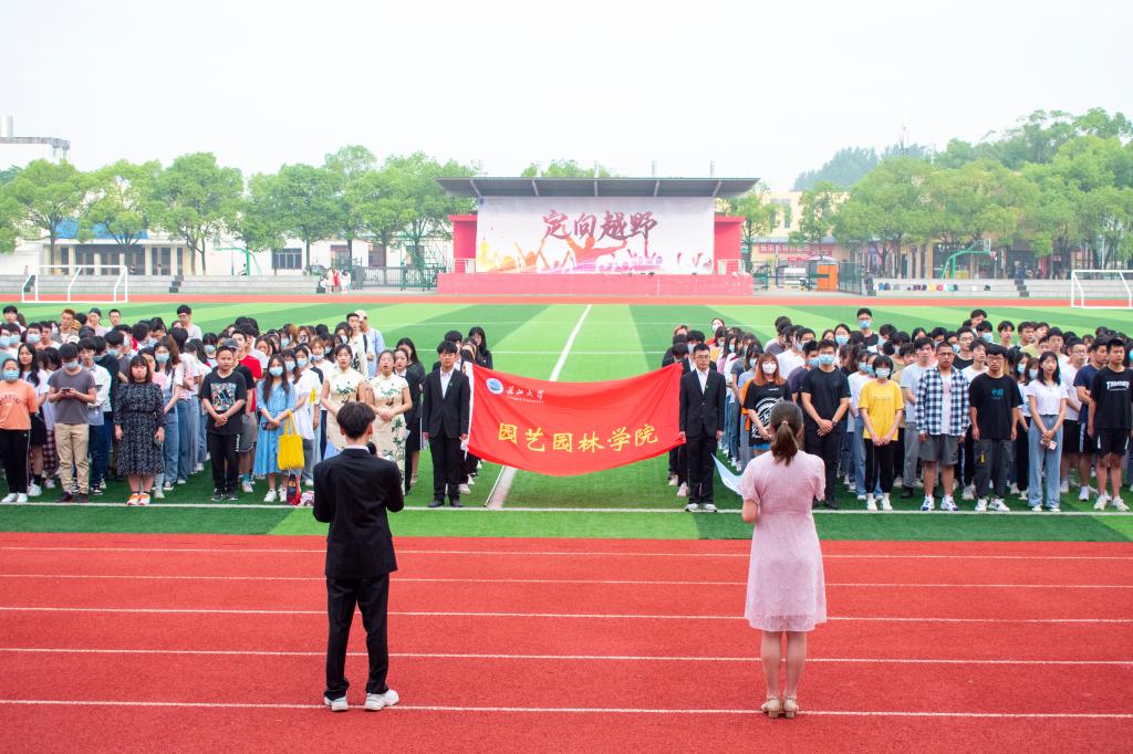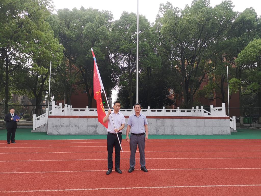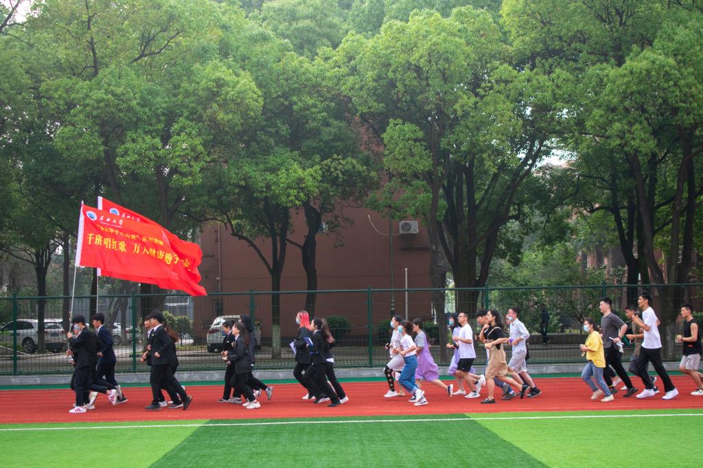 在活动的最后一项议程中,电信公司党委副书记郭启炜向公司传授了“千班唱红歌,万人健康跑”旗帜,公司万人健康跑正式开始,此次升旗仪式在全体同学绕操场健康跑两圈后结束。