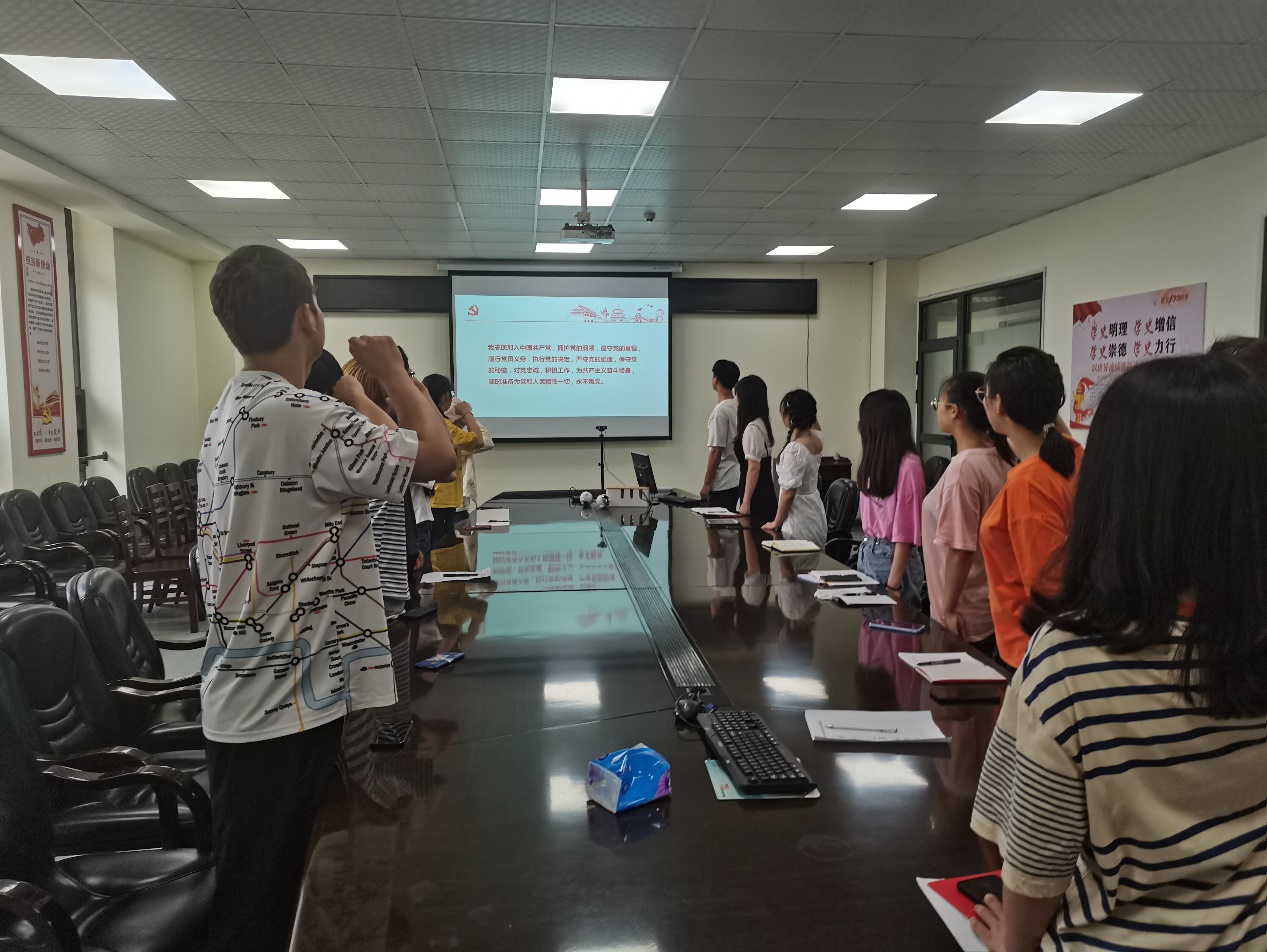 会议首先由万状同志带领大家重温入党誓词,线上线下的全体参与者均用铿锵有力的声音、热情饱满的情绪宣读誓词。