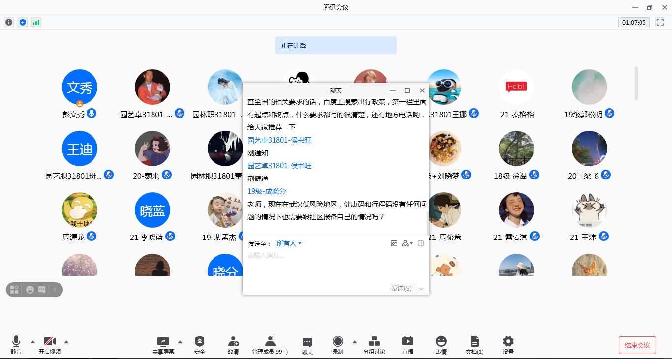 如图,在研究生专题会议上,研究生辅导员彭文秀依次就同学关心的问题进行答疑,本次会议为确保公司师生的安全健康和下一阶段公司产品工作的顺利开展提供了坚实的保障。