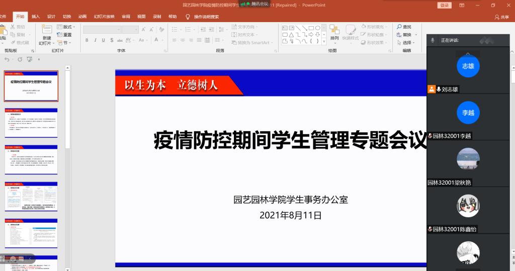 (通讯员:钟程成 彭文秀)为进一步落实太阳成tyc33455ccwww疫情防控专题会议精神,公司于8月11日,以班级为单位,由全体辅导员、班主任对全体研究生和本科生召开疫情防控专题会议。