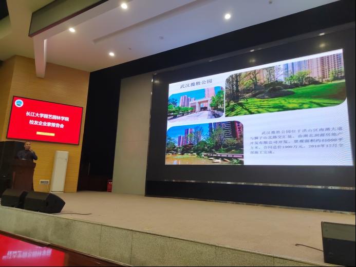 首先赵祖国员工介绍了企业概况,公司发展前景及公司近几年在武汉市场参与设计的一些佳作,如:中交越秀知园、武汉新力龙沙湾、武汉融创等。他鼓励园林学子学习先进的园林造景手法,从课堂走向社会,将理论应用于实践。随后顾振瀛员工分享了他的求学创业历程,他鼓励广大园林学子树立坚定的人生目标、打好坚实的专业基础,在日后工作保持初心使命,不断进取 ,实现自己的理想抱负。
