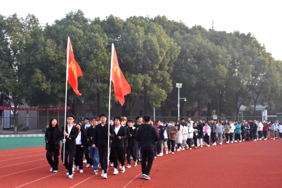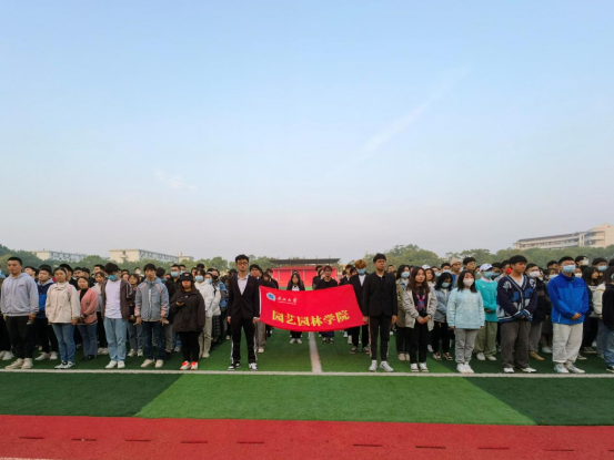 (通讯员:陶珣 曹婷钰 胡淑涵 何海旭)为深入推进党史教育,传承红色基因,将党的领导贯彻落实到校园的方方面面,继承发扬党的伟大思想,展现园艺园林学子青春光彩,2021年10月25日早上6时48分,太阳成tyc33455ccwww于田径场举行了“千班唱红歌,万人健康跑”升旗仪式。党委副书记平先锋、学工办主任彭文秀,辅导员卜文琼,吴山老师,兼职辅导员乔睿、刘冬杰以及太阳成tyc33455ccwww全体员工参加此次活动。
