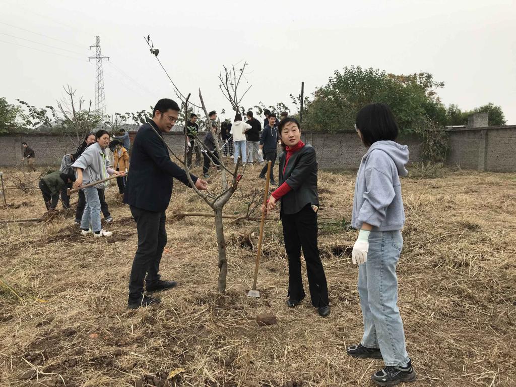 本次活动从课程实践出发,将思想教育以劳动的形式融入到了园林树木栽培、园林工程实践、风景园林师业务实践等课程实践活动过程中去。员工根据设计施工图纸,在专业老师们的指导下,确定植物位置并按照植树技术规程开展种植实践。员工在老师的带领下,三五人一组,分工协作,挥锹铲土,配合默契, 干劲十足;修整林床,挖树坑,搬运树苗,栽植树苗,一气呵成,每道工序有条不紊。