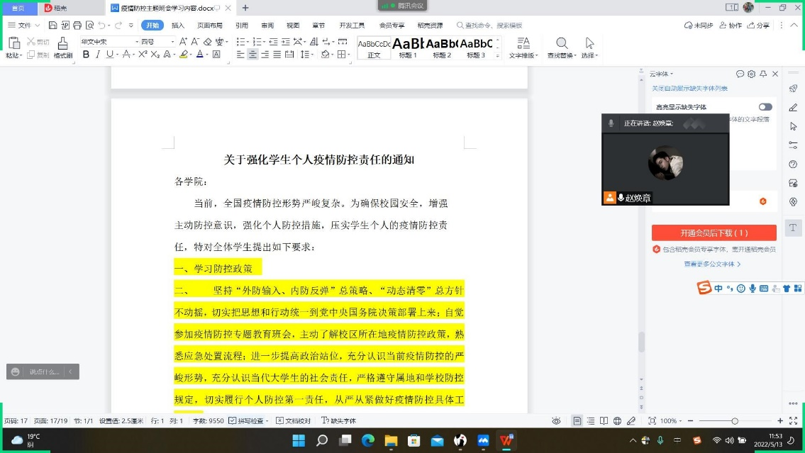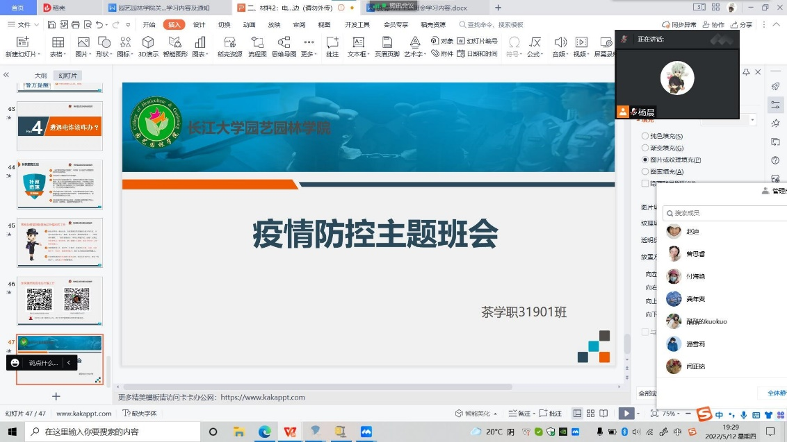 班会内容主要带领同学们认真学习《高等公司新冠肺炎疫情防控技术方案(第五版)》、《近期研究生疫情防控工作提示》和《太阳成tyc33455ccwww新冠肺炎防控指挥部通告》(2022年第5号)等相关制度和要求,并列举具体案例,向同学们讲清楚讲疫情防控形势的严峻性、实施疫情防控措施的严肃性、高校在疫情面前的“脆弱性”。