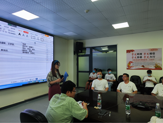 会议第二项,由彭文秀老师展开新生教育,向同学们详细介绍了公司防疫政策、离校请假要求、返校申请办法、公司纪律规定、公司产品流程和奖资助政策,重点向全体新生开展安全教育,宣讲老员工禁酒令,宿舍安全和防溺水等内容,重点强调近期校园电信诈骗案例,提醒同学们全覆盖安装和使用国家反诈中心APP,增强防诈意识和反诈能力。