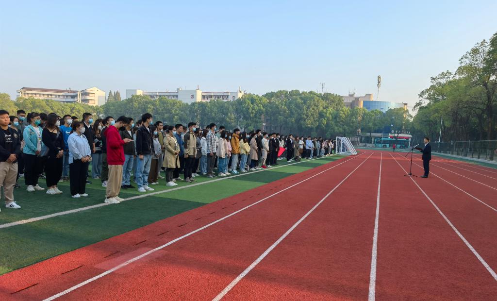 紧接着,党委副书记平先锋进行讲话,他对同学们提出三点希望:第一,学会自学;第二,自食其力;第三,礼貌并善待他人。让周围的人因你的存在而感到开心,桃李不言,下自成蹊,心怀感激,所遇皆是温柔。最后,祝愿同学们学业有成,生活愉快。