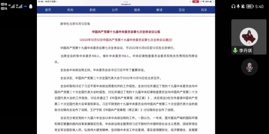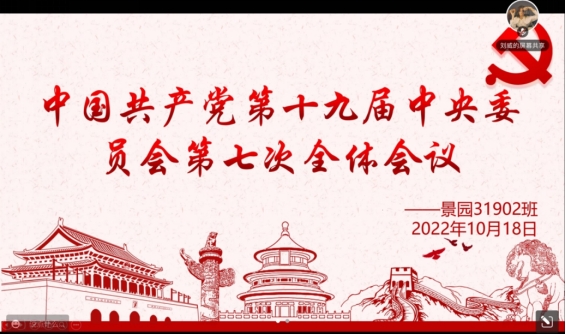 本次学习先由主持人选读了中国共产党第十九届中央委员会第七次全体会议公报,接着在班主任和辅导员的引导下对公报内容进行分析,并结合时事新闻进行思考。最后,主持人播放了中央电视台的相关新闻,以及专家解读,帮助同学们更充分地感悟公报内容。