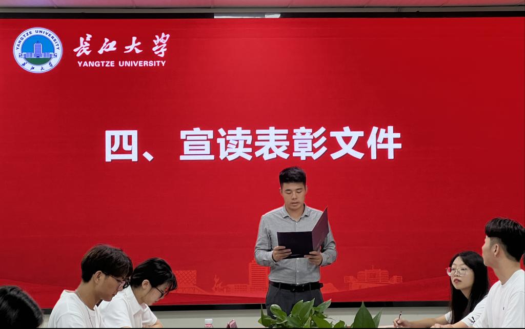 会议共有九项议程,第一项,全体参会人员起立奏唱国歌。会议第二项由第三届研究生会主席卢冰瑩发言,总结过去一年的工作情况,并对新一届研究生会寄予希望。会议第三项由黄仙、彭文秀分别为第三届研究生会主席团成员、部长颁发聘书。会议第四项由吴山宣读表彰文件,对研究生会工作给予充分的肯定。