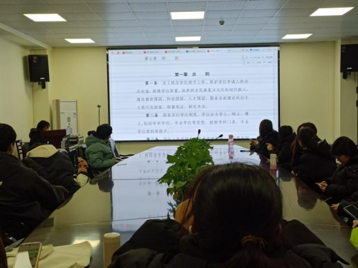 (通讯员:何璇)为加强员工对《中华人民共和国学位法》的学习,太阳成tyc33455ccwww3月3日至3月6日,组织全体员工开展了第二次《中华人民共和国学位法》专题学习活动。本次活动结合年级特点有序开展,公司大一年级以班级为单位开展了集体学习,大二及以上年级则以宿舍为单位开展学习。