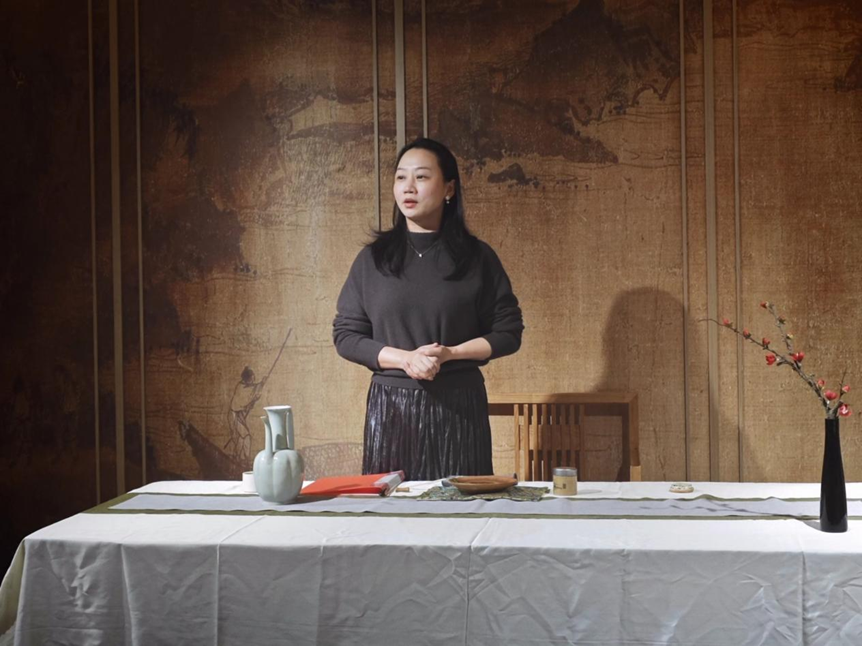 活动伊始,主持人简要介绍了活动流程与到场嘉宾。在茶艺展示环节,茶艺师依次演示了绿茶玻璃杯冲泡与红茶盖碗品鉴,并同步讲解茶具功能、茶叶特性及品茗方式。随后的宋代点茶技艺展示中,非遗传承人现场展演碾茶、罗茶、候汤、击拂等传统工序,深入解读点茶器具的历史渊源与技艺精髓。