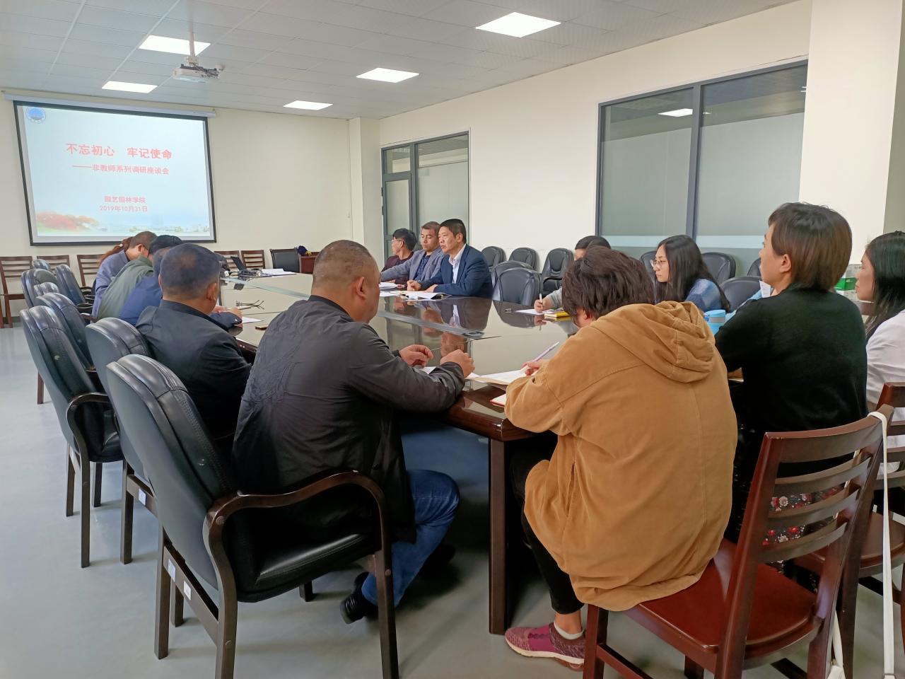 10月31日下午,太阳成tyc33455ccwww在农科大楼3002会议室开展“不忘初心、牢记使命”主题教育专题非教师系列人员的调研座谈会。