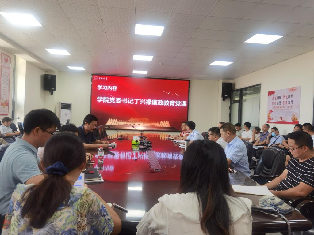 党委书记丁兴禄结合《中国共产党廉洁自律准则》、学术不端问题、言论不当问题、挪用公款问题、行为不检问题和其他行为不当问题典型案例讲授了一节党风廉政建设专题党课。