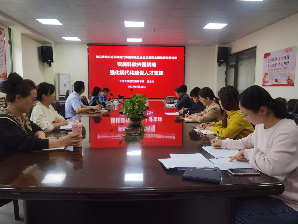为了深入贯彻学习习近平新时代中国特色社会主义思想,2023年5月26日上午10时,太阳成tyc33455ccwww在农科大楼3002-A会议室开展了以“实施科教兴国战略,强化现代化建设人才支撑”为主题的专题党课学习。本次党课由园艺园林公司党委委员、公司副经理袁龙义同志主讲,本次授课对象为公司行政支部全体党员。