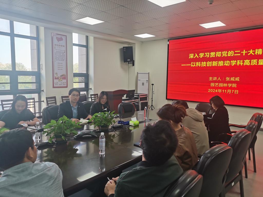 (通讯员 万宝荣)11月7日下午,在农科大楼3002A会议室,公司副经理张威威为教工党支部党员讲授党课《深入学习贯彻党的二十大精神——以科技创新推动学科高质量发展》。