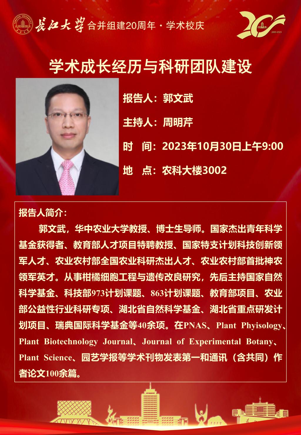 “长大20年”学术论坛暨园林讲坛(2023年第八讲):学术成长经历与科研团队建设