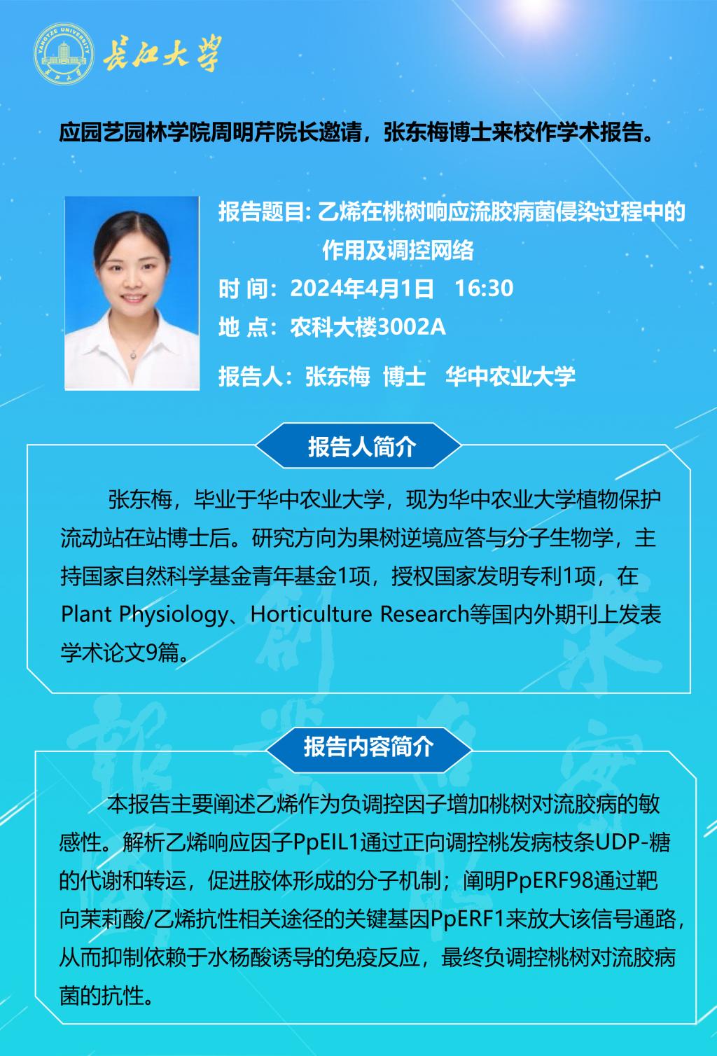 园林讲坛(2024年第五讲):乙烯在桃树响应流胶病菌侵染过程中的作用及调控网络