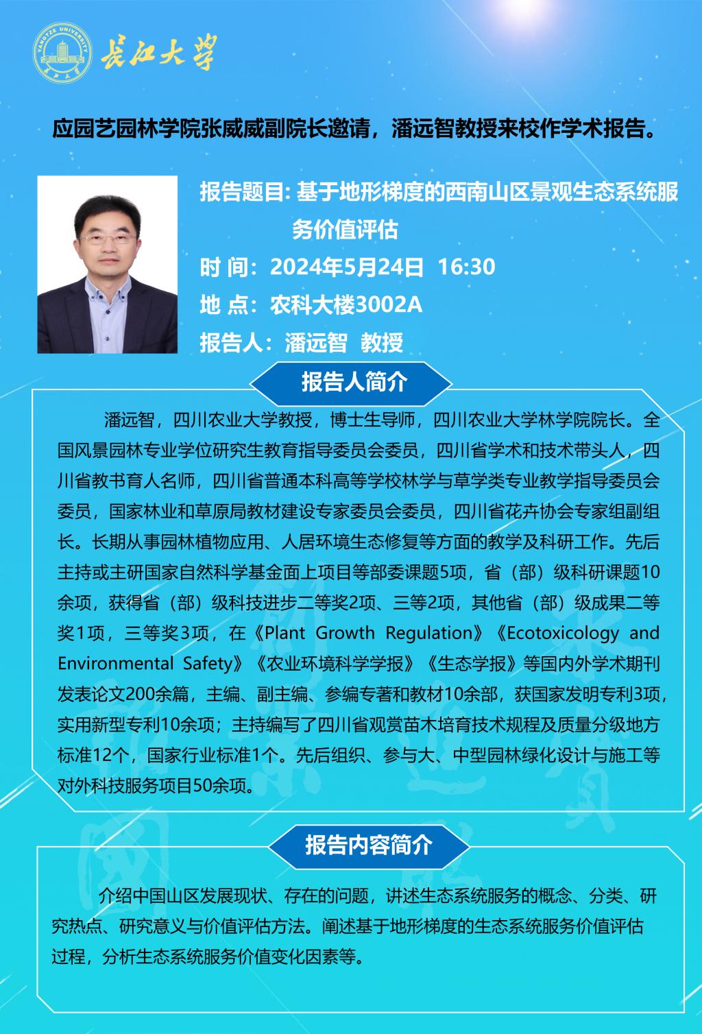 园林讲坛(2024年第十讲): 基于地形梯度的西南山区景观生态系统服务价值评估