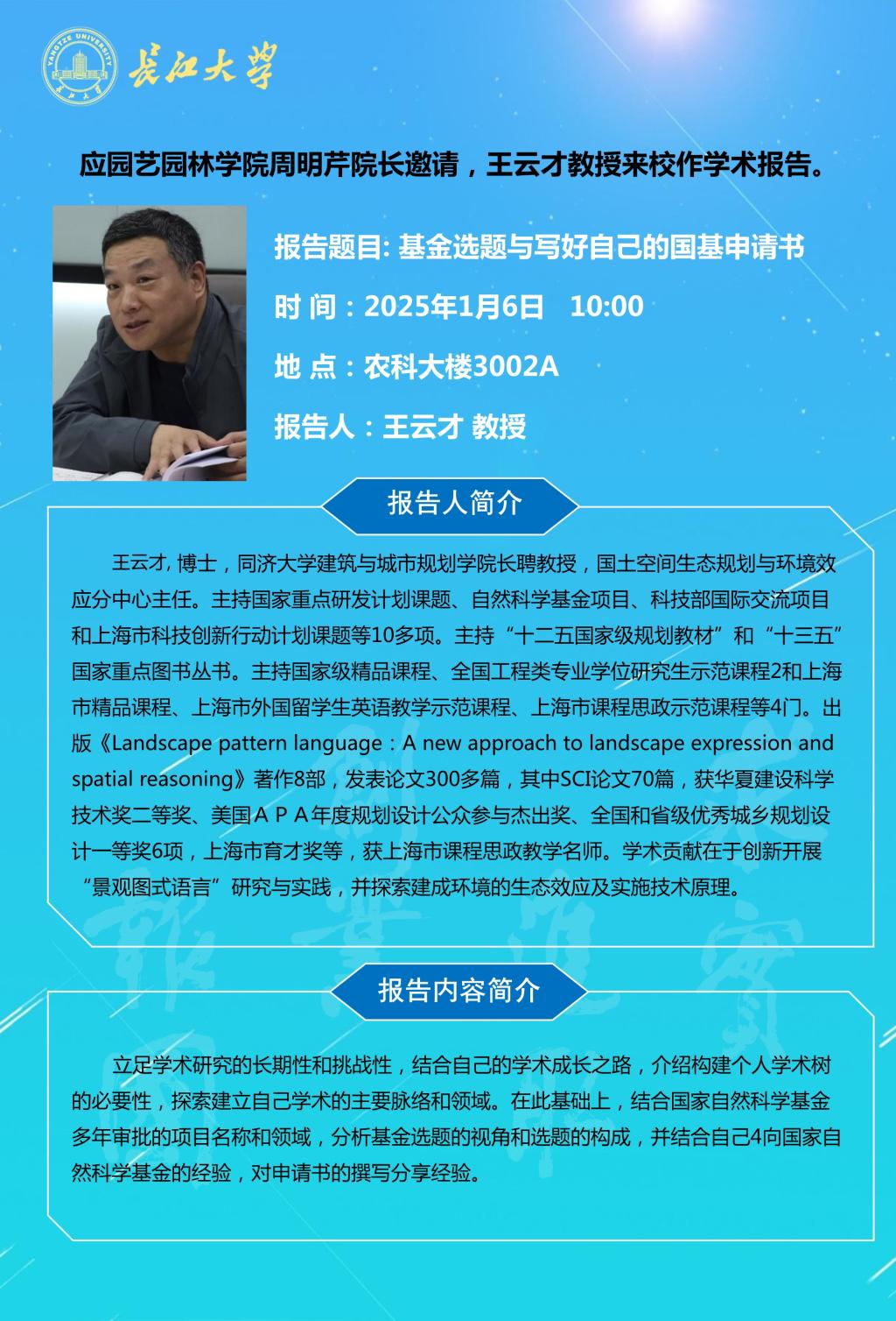 园林讲坛(2025年第三讲):基金选题与写好自己的国基申请书