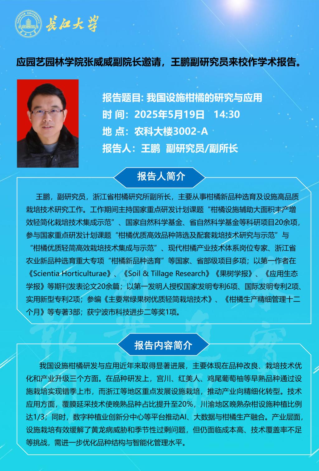 园林讲坛(2025年第七讲):我国设施柑橘的研究与应用