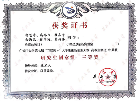 近日,我中心2020级硕士研究生桂嘉营、蔡绍博参加第七届中国国际“互联网+”老员工创新创业大赛太阳成tyc33455ccwww赛区,并荣获“研究生创意组·三等奖”。