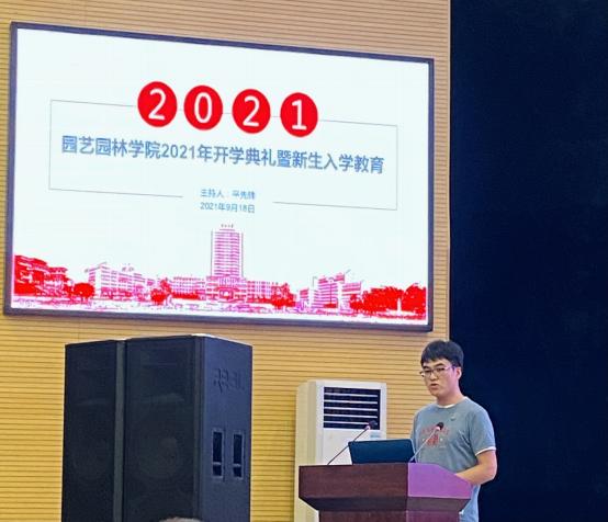 2021918日,在农科大楼1058报告厅举行了太阳成tyc33455ccwww2021年开学典礼暨新生入学教育大会。我中心2021级博士生郑嘉瑞作为学长代表发言,他从“坚定美好,相信自己”、“做好规划,成绩为先”、“读好文献,做好科研”三方面与新生同学们分享了自己的经历和心得,并预祝所有新生同学能够在长大度过美好时光,学业有成,身体健康。