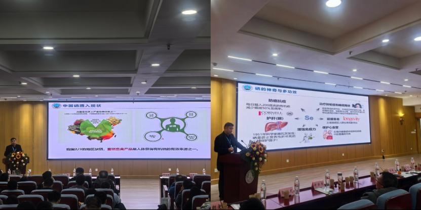 我团队许锋教授、叶家保副教授、王启剑副教授受邀参加此次会议。许锋教授作了题为“木本饲料构树富硒机制及产业化应用”的报告,从中国硒摄入现状以及硒的功效进入主题以木本饲料树种构树为中心展开了其富硒栽培和聚硒机制的研究成果,报告深入探讨了构树富硒栽培技术以及其聚硒的分子调控机制,揭示了印度梨形孢协同构树耐硒的生理与分子机制。