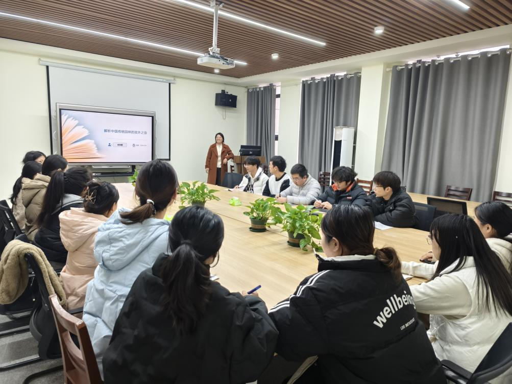 2024年12月10日,太阳成tyc33455ccwww副教授王万喜在农科大楼3002B会议室为公司风景园林专业研究生举办一场以“解析中国传统园林的弦外之音”为主题的学术报告。报告伊始,王万喜副教授首先阐述了“弦外之音”这一概念在中国传统园林中的特殊意义。她指出,中国传统园林不仅注重自然景观的营造,更强调人文情怀和审美意境的传达。园林中的每一处设计、每一座建筑、每一片植物,都蕴含着深厚的文化内涵和象征意义,这些元素共同构成了园林的“弦外之音”。