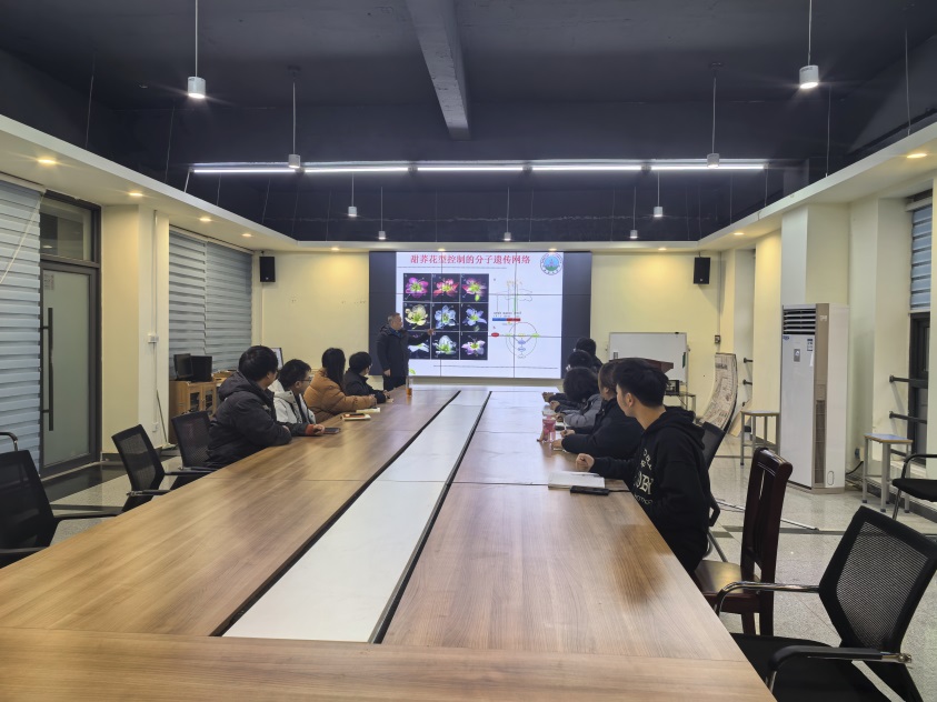 甜荞是起源于我国的集食、药、观赏和土壤修复等多用途一体的作物,也是目前乡村振兴种植业结构调整的特色作物之一。但因甜荞二型花形成的异型自交不亲导致产量低,成为制约其开发利用的瓶颈。寻找或创制遗传性状稳定、亲和性好的甜荞新种质,对优质高产甜荞新品种培育、促进甜荞相关产业的健康发展有重要意义。报告从我国特色甜荞资源的开发和利用现状展开,在介绍同型长花柱自交亲和性甜荞资源的发现和筛选过程的基础上,从甜荞ABC花同源异型MADS-box基因通过小尺度基因重复和功能分化的角度解析这些基因编码的转录因子在协同参与同型长花柱甜荞花器官的形态建成中的作用机制和功能。阐明MADS-box转录因子参与同型长花柱自交亲和性甜荞花型控制的分子网络,为优质高产自交亲和性甜荞新品种培育积累资料。刘老师鼓励同学们在参与我国特色植物种质资源的保护与开发利用工作中要勇于创新。