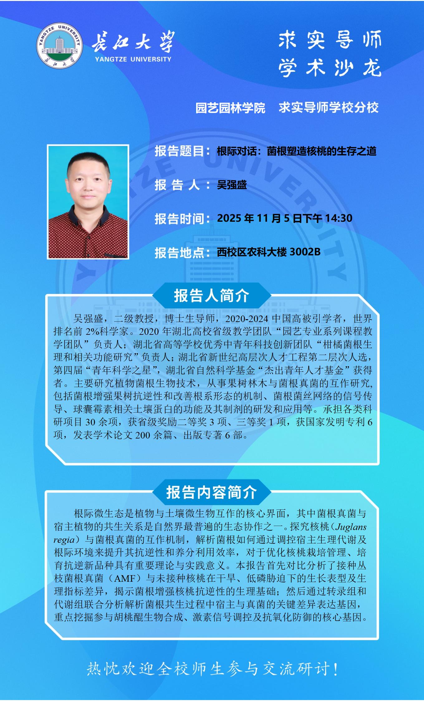 2025-2026学年“求实导师学术沙龙”第(八)期公告